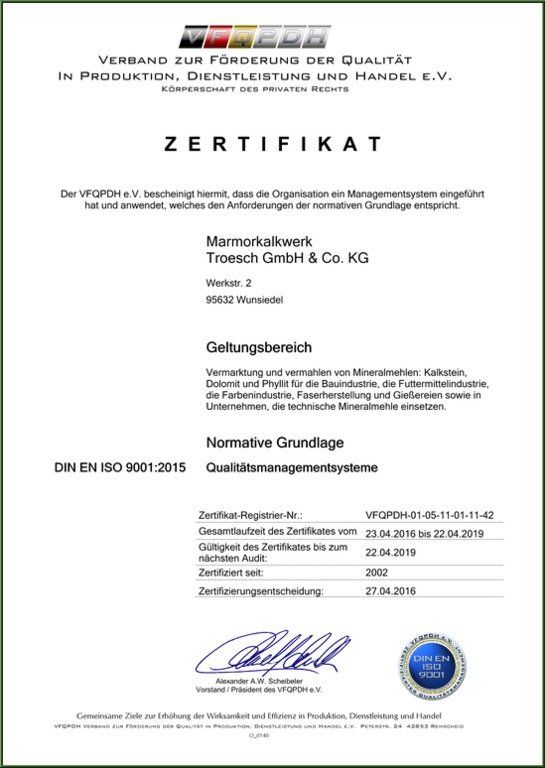 schon seit 2002 ist unsere Produktion nach der DIN EN ISO Norm zertifiziert.